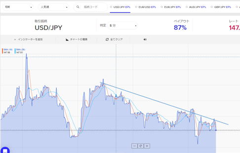 | 上手くなれば | エッジのある限り、エントリーしても判定を待たなくもチャンスがあればエントリーしていきます。 最初は練習でフリーデモでやってください。 やっているとそのうち調子が出ます。 |