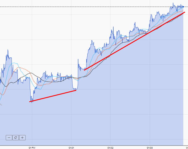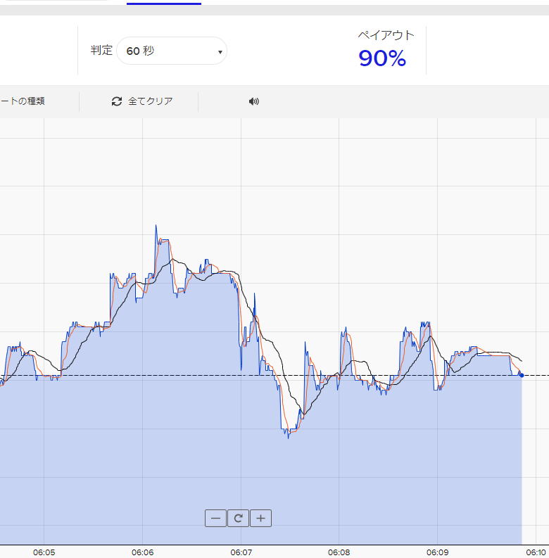 ![]() 短い時間のチャートで横滑りしているのが見れます。 3分のHighLowチャートでは横滑りは無いですが 60秒、30秒や15秒ではよく出ますので、 横滑りしたら勝てないと思ってください。 勝っても次は負けるので 短い時間チャートでの横滑りは最初から負けるのかな と |