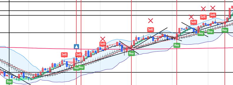 | DEAL BB with MA (With Alerts)というインジケーターを使っています。20251027 階段線を(NMAblack line)と言います。。 中央部分を横切る赤い線はVWAP MIDDLE LINEと言います。定義は書いていないですが100-200のMAくらいの長期線として考えます。ロウソクが上なら上昇 下降ならロウソクは下 ![]() チャート画面に20MAと5MAの二本を使っても同じような原理です。ここはバイナリコーナーなのでFXならロウソクと20MAで十分です。 勿論、他のエントリー根拠とその手法もありますが、それはそれでうまくなれば勝率を検証して追加してやってください。 私はNブレイク Иブレイク 水平ブレイクなら この手法とは関係なくエントリーしますが、ダブることもあります。 |